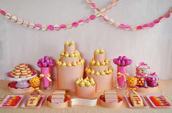 - También podemos usar y abusar de los colores mas fuertes, como para decorar la mesa de los invitados o la mesa principal.