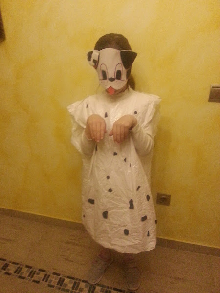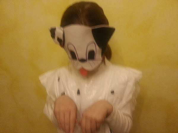 Este otro disfraz de temática los 101 dalmatas. La careta se confecciona con goma eva.
