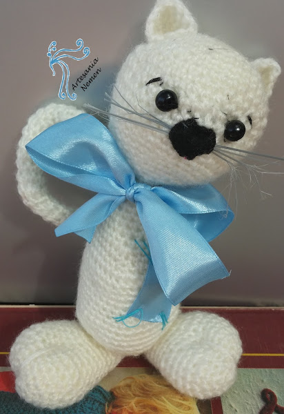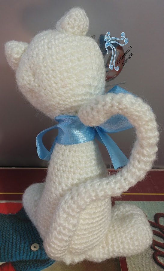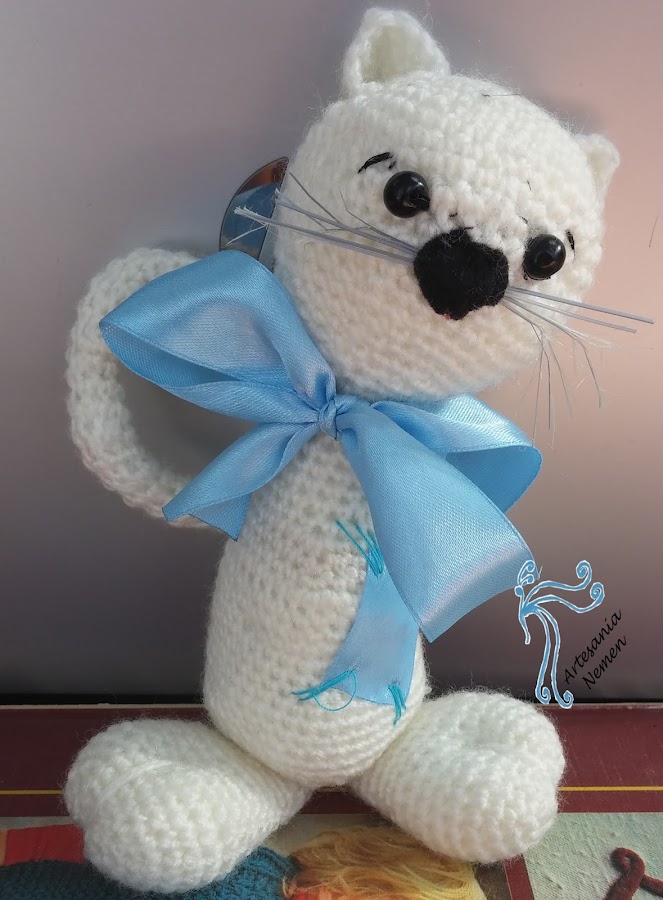 Buscando patrones para cumplir con el reto de la fecha de cumpleaños que propuso Bea encontré este lindo gatito, no era exactamente así porque yo lo acomodo a mi manera, pero el original esta sacado de: http://amigurumies.blogspot.com, y fué traducido por Rani para ellos. Es un blog que aconsejo ya que tiene infinidad de patrones gratis y las explicaciones están geniales, desde aquí agradezco su aportación.