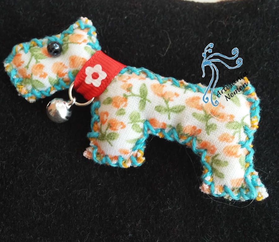 Yo no tiro nada que pueda reutilizar y aquí va una muestra, con los trocitos pequeños de las telas que van sobrando de los trabajos se pueden hacer diferentes adornos, en esta ocasión un broche de perrito.