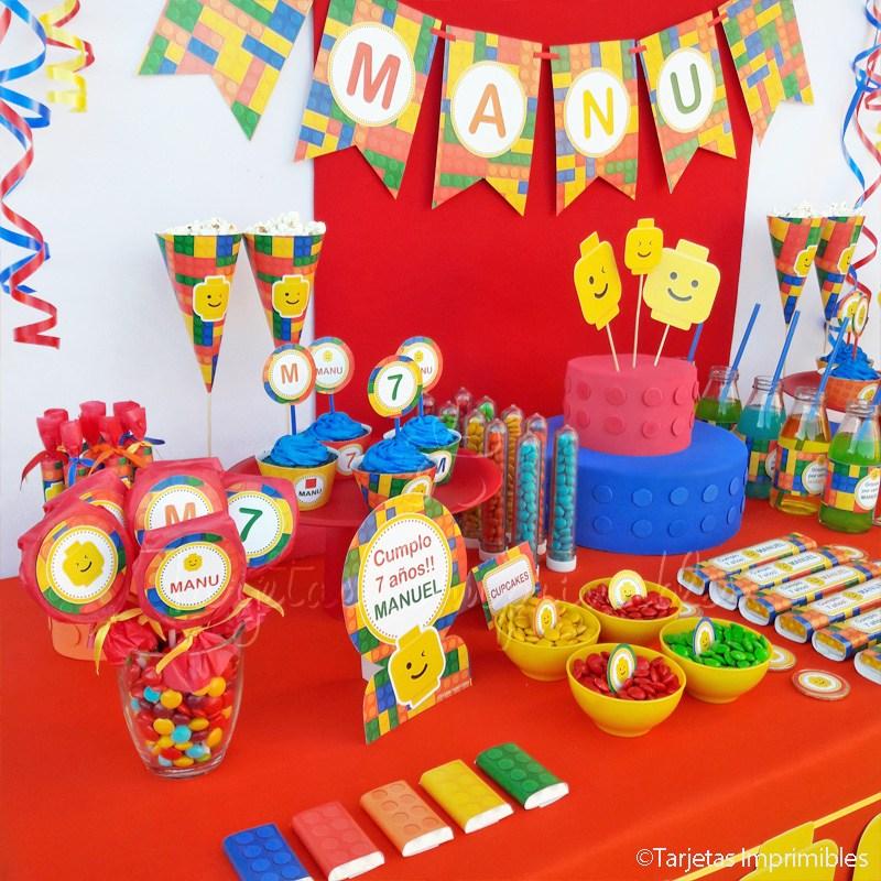 Creo que por casi todas las manos infantiles ha pasado alguna vez un juego de lego, ladrillitos o bloques de construcción. Mis hijos los han tenido en todos los tamaños según iban creciendo. Hoy es un tema de fiesta super divertido y colorido que me encanta!