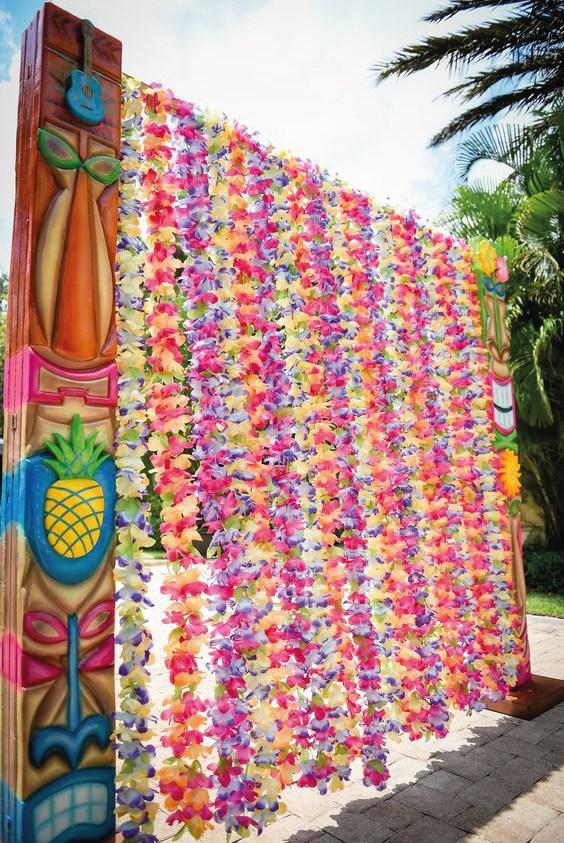 En la decoración de un cumpleaños de Moana no pueden faltar los colores vibrantes y brillantes de las playas tropicales. La flor del Hibisco y las bonitas flores de Plumeria, sumado al follaje de las hojas de Monstera y palmeras o helechos son imprescindibles en la decoración hawaiana o tropical.