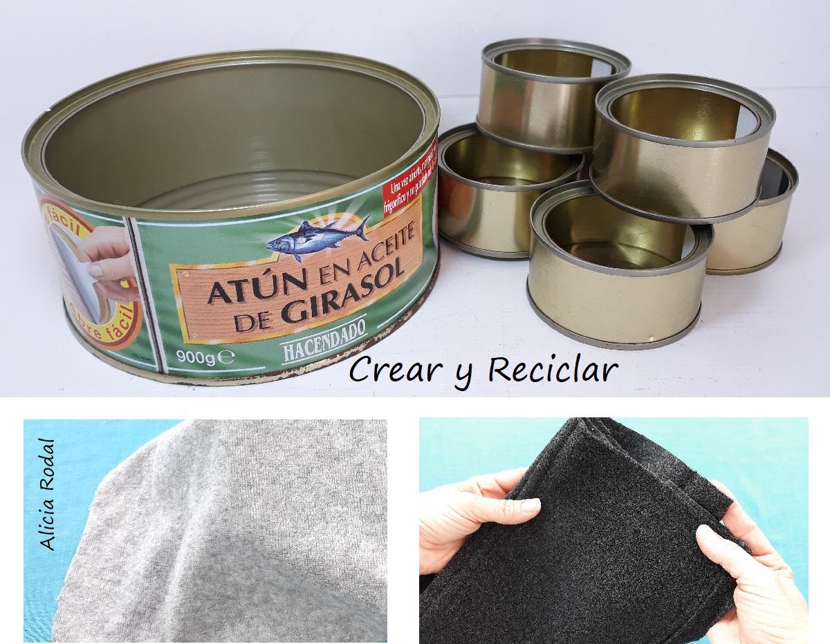 Lo primero que tenemos que tener en cuenta es que las latas deben estar bien limpias y secas. Como este tipo de latas suelen tener aceite u otro tipo de grasa, te recomiendo que las laves primero con agua y jabón o detergente de lavar platos y luego que las metas en agua hirviendo, para quitar todo el aceite.Si no lavamos bien las latas, corremos el riesgo de que luego empiece a oler mal o se manche la tela o el material que usemos para forrarlas.