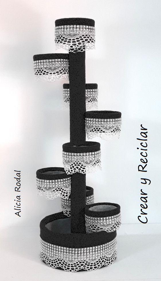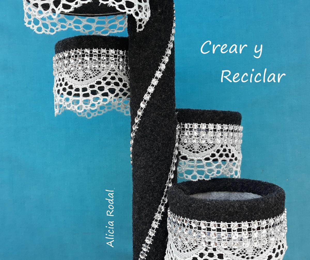 Si quieres puedes cambiar los materiales para forrar las latas, o también las puedes pintar, puedes reutilizar más o menos latas pequeñas, darle una altura diferente o cualquier otro cambio que quieras hacer.