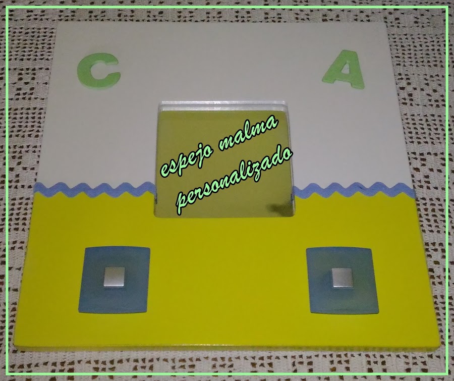 Este espejo me ha dado más de un dolor de cabeza. En primer lugar, yo iba buscando un malma de madera sin tratar y, ahora mismo, sólo se hacen en blanco o negro. Intenté pintarlo con pintura acrilica y no quedó bien. Después, pense hacer decoupage con servilletas infantiles y no encontré ninguna que me encajara, incluso miré con papel de scrap para ver si me valía y nada. Total que pensé pues con pintura en espray hago dos zonas para que quede más colorido, y elegí un amarillo claro que luego al pintar quedó amarillo intenso... total todo cosas en contra.