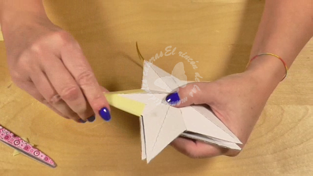 Y a la que he pintado color oro le pondré en uno de los lados de cada punta de la estrella purpurina con cola blanca.