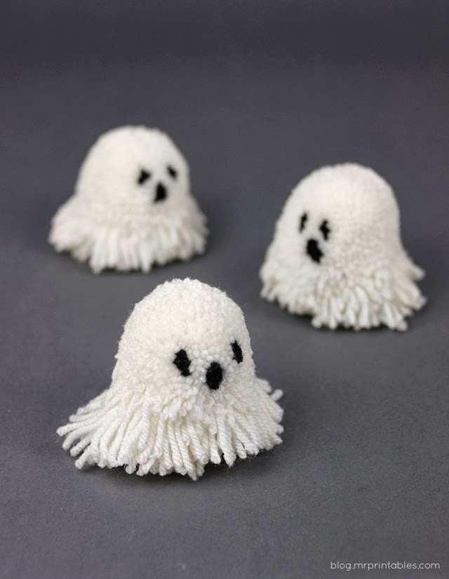 Mr Printables nos deja una genial idea, crear pompones con forma de fantasmas, calaveras, ojos, etc... Nos deja un tutorial para que nos resulte muy fácil crearlos.