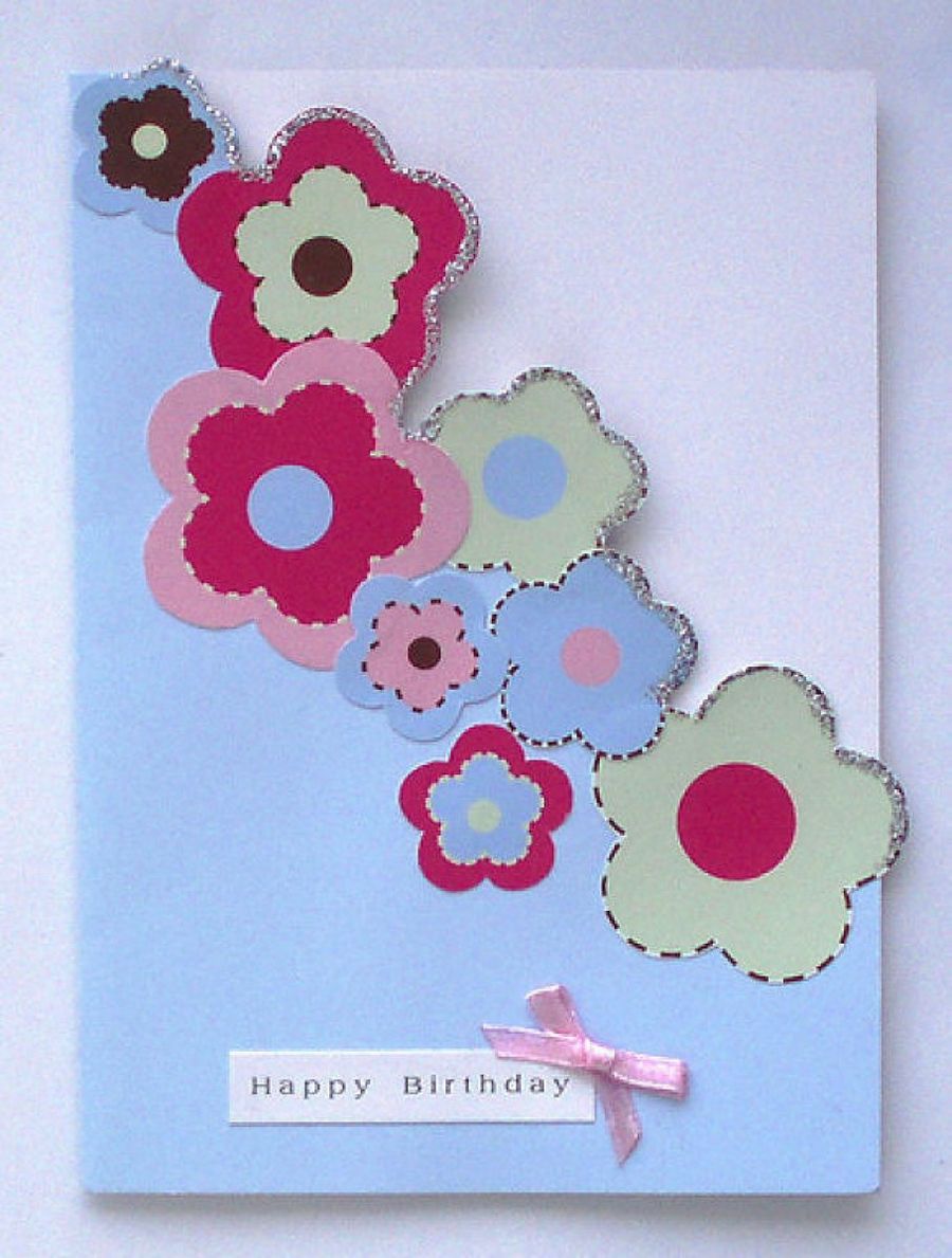 Por último, una tarjeta un poco más diferente e incluso más fácil todavía de elaborar. Bastará con recortar el contorno de las flores dibujadas en la portada, lo que le da un profundo efecto de armonía y jovialidad, junto con el Feliz Cumpleaños intrínseco y su lacito decorativo.