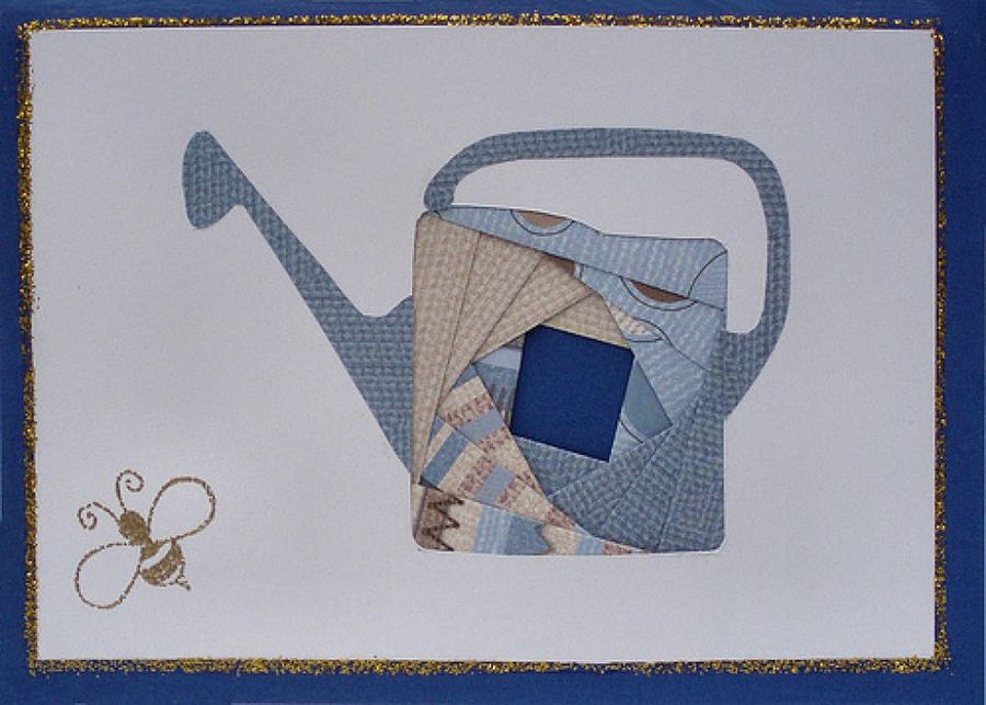 Una tercera opción tiene el mismo procedimiento que la primera tarjeta: una graciosa regadera, que incluso podría hacer pensar y concienciar en cierto modo a los nenes sobre la importancia de la ecología y el cuidado de la naturaleza, acompañada por una carismática abejita en la esquina inferior izquierda que le aporta mucha vida a la ilustración.