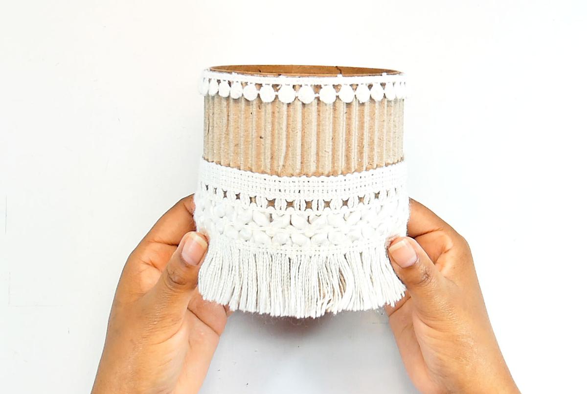 Estas son solo algunas ideas para organizar estilo Boho utilizando una caja de cartón y una lata.