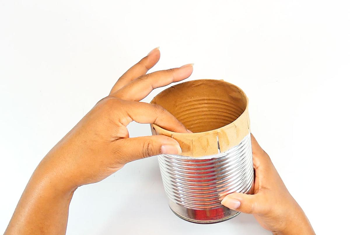 Cortar una tira de cartón corrugado en la parte exterior de la lata.