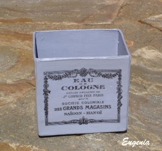 Eugenia Castaño y su blog Vamos a reciclar encontraras 4 fabulosas cajas con decoupage, transfer?entre otras técnicas Eugenia es una maestra que esta enganchada al reciclaje no dejes de visitar su blog es una maravilla. Visítalo Aquí, aquí, aquí y aquí.