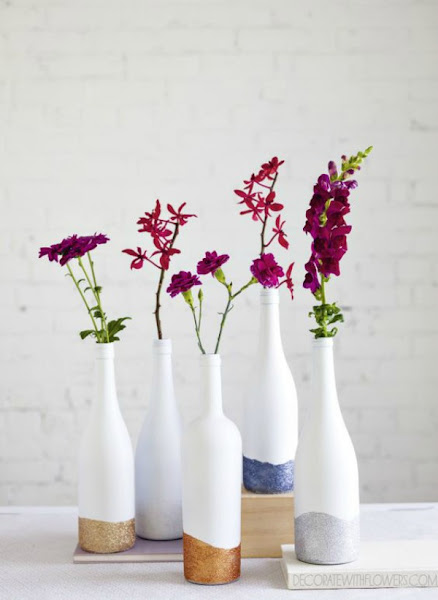 Fuente: Decorate with flowers Y si lo tuyo es la mano alzada y quieres animarte a personalizar a golpe de pincel ¡estás de enhorabuena! Y es que tus botellas podrán convertirse en el lienzo perfecto para dar forma a las creaciones más variopintas.
