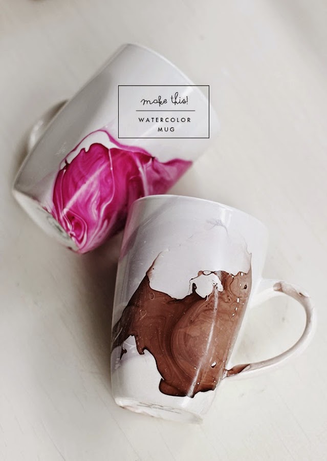 1) Variante fácil y económica: la taza con efecto acuarela, para los artistas.