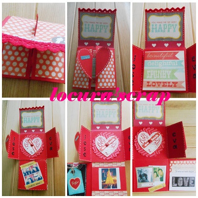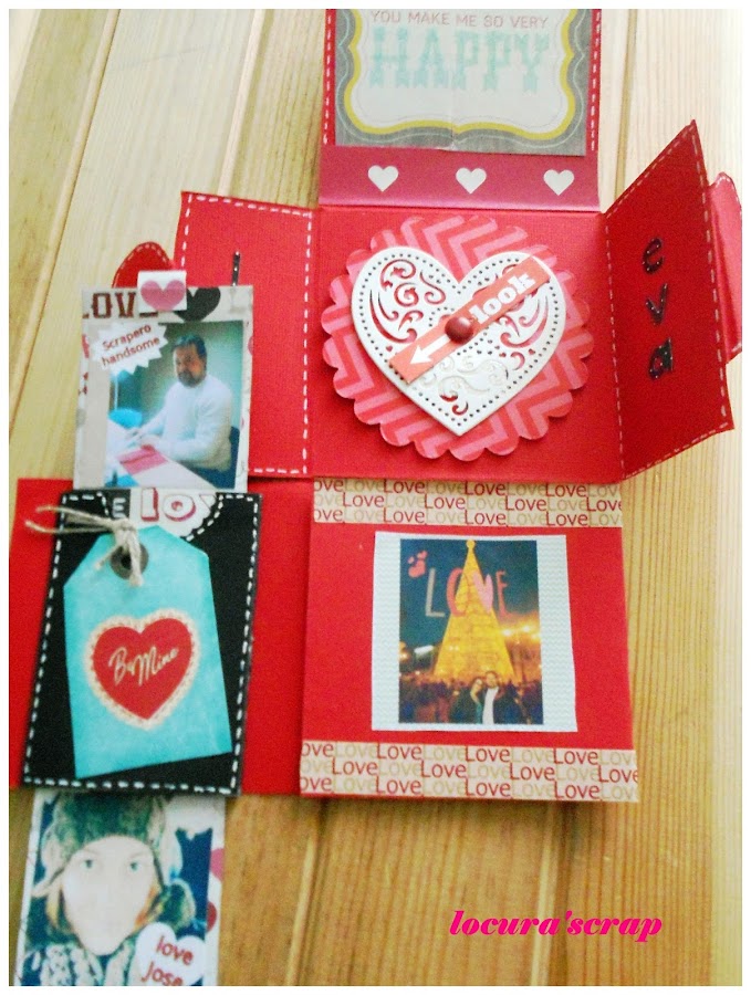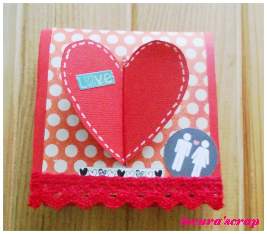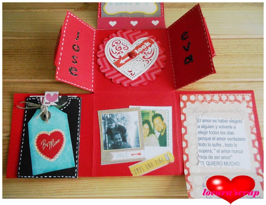 Es una tarjeta mini álbum de bolsillo , lo hice con un papel básico rojo de scrap y luego lo decore con papeles de la ultima colección que me regalo el a mi :-)