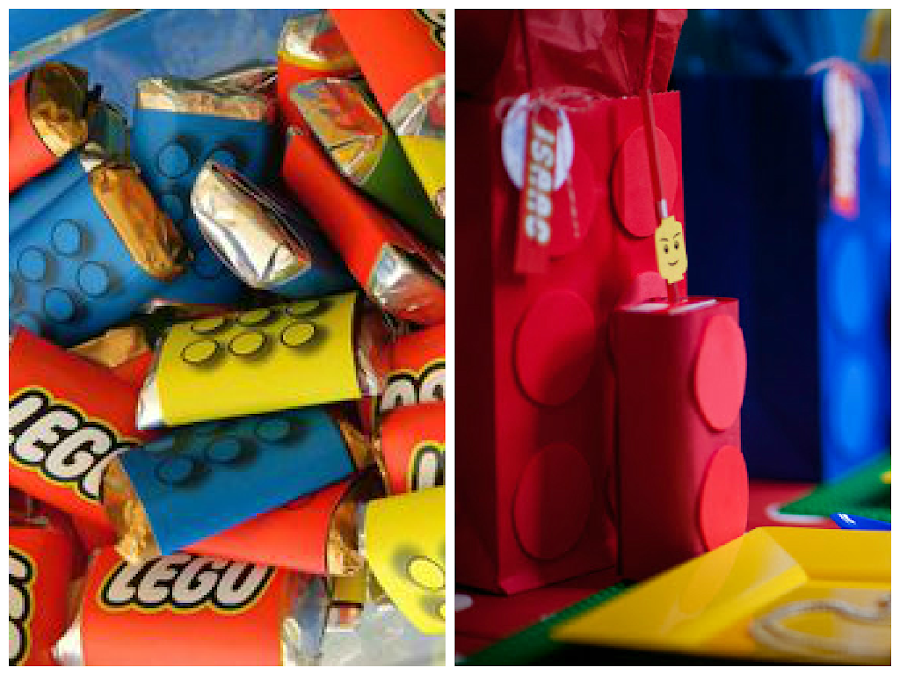 Chocolates y zumos vestidos de Lego.
