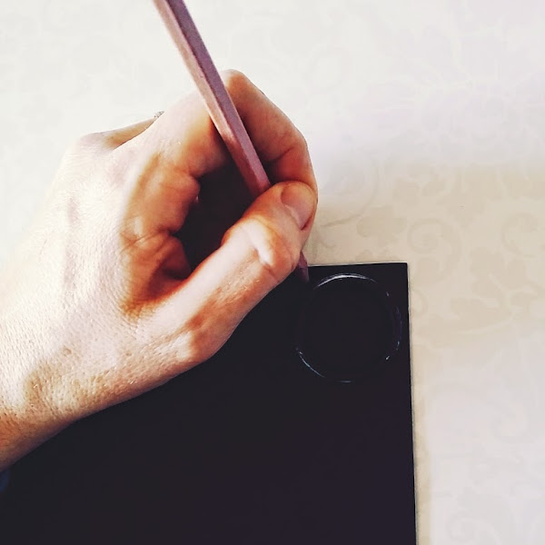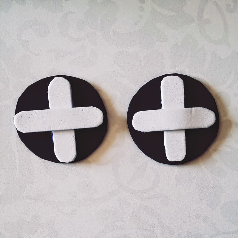 He usado un aro de cortina para hacer la forma de los ojos, con un lápiz he dibujado la forma