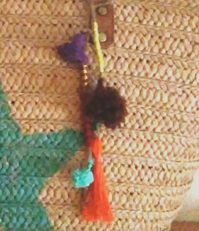 Para el accesorio que cuelga sólo hemos utilizado un trozo de cuerda, hilos de colores y algunos abalorios. Puedes hacer toooodo lo que se te ocurra.