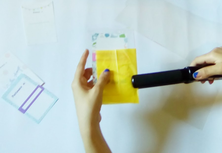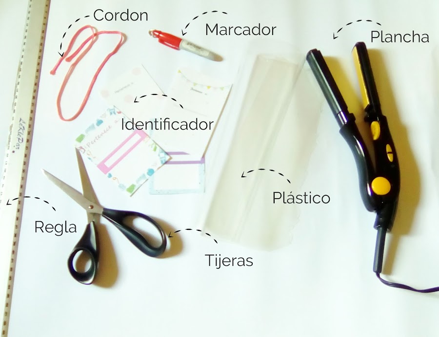 Ahora coloca el identificador en medio de los plásticos para proceder a pegar los bordes, para eso vamos usar nuestra plancha (Encendida por favor). Pero antes de pasar la plancha coloca el papel de seda sobre el plástico. La plancha no puede hacer contacto directo con el plástico (Anjá que te lo digo yo, nada más te digo que menos mal tenía suficiente plástico)