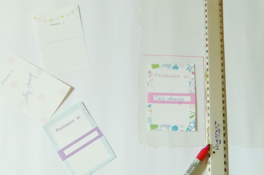 Empezamos cortando 2 rectángulos según la medida de nuestro identificador. Para eso coloca el identificador encima del plástico y con ayuda de la regla, marca 1 cm de borde por alrededor y recorta.