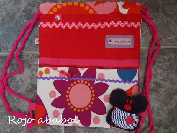 Y acompañando la mochila un ratoncito guarda dientes, a tono con los gustos de la dueña, por supuesto... jejeje