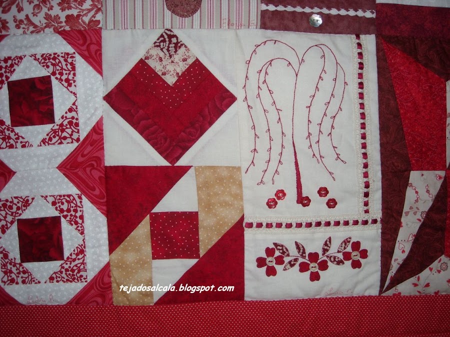 Llevo varios años practicando patchwork, y todavia me queda mucho camino por recorrer...Admiro a la gente que hace colchas de patchwork con tanta facilidad,a mi me costó muchisimo, ya que hasta ahora no habia hecho trabajos tan grandes...pero el que la sigue con paciencia y puntadas a mano... la consigue. Terminarla ha sido todo un reto para mi. Se que tiene muchos fallos pero de todo se apre ...