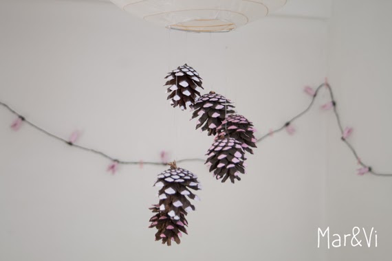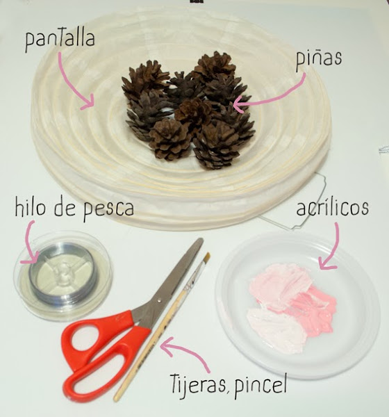 Hoy os traemos un ?IKEA HACKS? muy sencillo, perfecto para la habitación de una niña o de bebés (yo lo he hecho para mi hija). Se trata de una lámpara infantil con móvil de piñas, que he hecho reciclando una pantalla REGOLIT de Ikea.