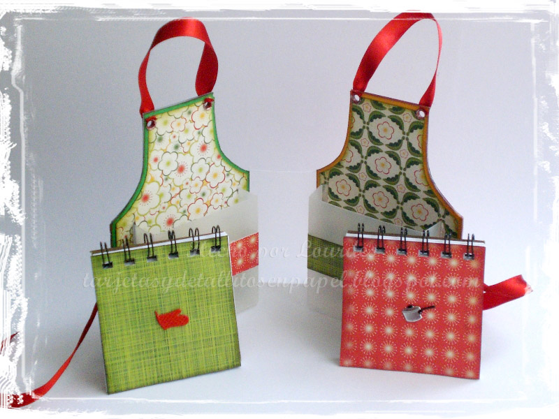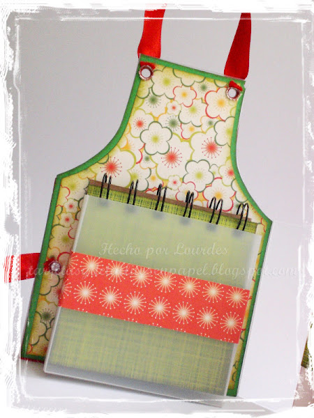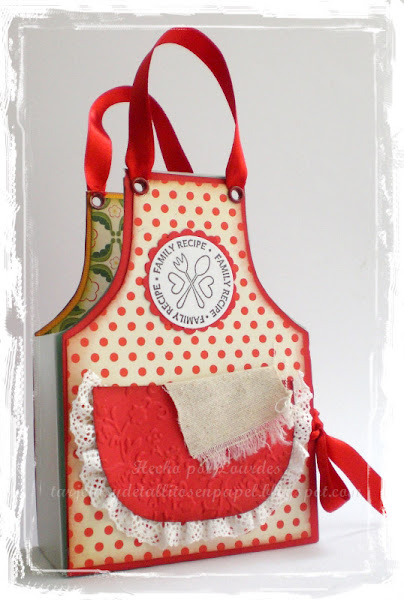 El reto de VCI #10 para este mes, era acerca de la cocina: realizar una caja, tarjeta o recetario en forma de delantal. A mi lo de cocinar, no me va sencillamente (al menos lo salado) y no tengo ni un solo recetario para apuntar decentemente....así que me hacía muchísima ilusión participar en este reto porque tenía papeles, sellos y brads perfectos para ello. A ver si con este derroche de color me animo por hacer algo!