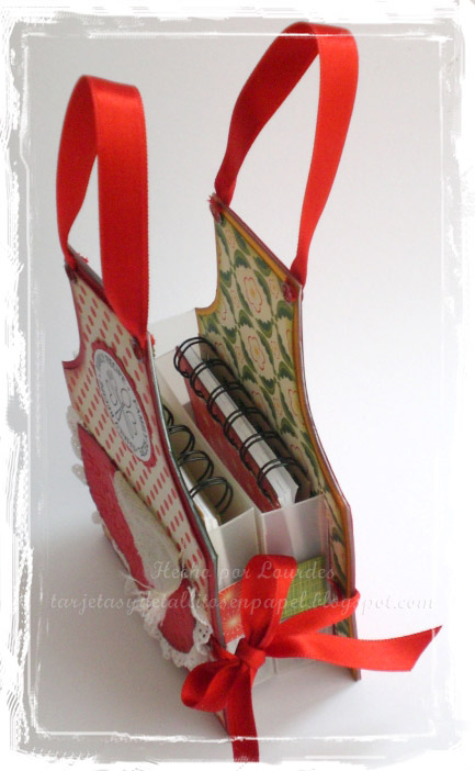 Es una caja realizada en plástico translúcido, que tiene dos compartimientos al abrirla y con dos pequeñas libretas