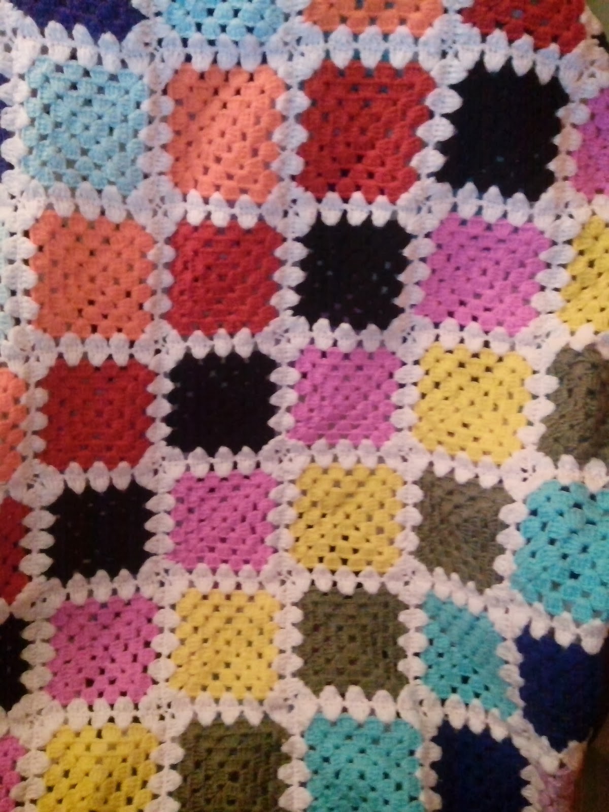 Así que aquí os dejo un adelanto de lo que seremos capaces de llegar a hacer después de la lección dos. Una manta de los llamados "granys". Pero por qué ponerle nombres extranjeros si los podemos llamar cuadros. De ahora en adelante los llamamos cuadros, como mucho acepto cuadros de la abuela.