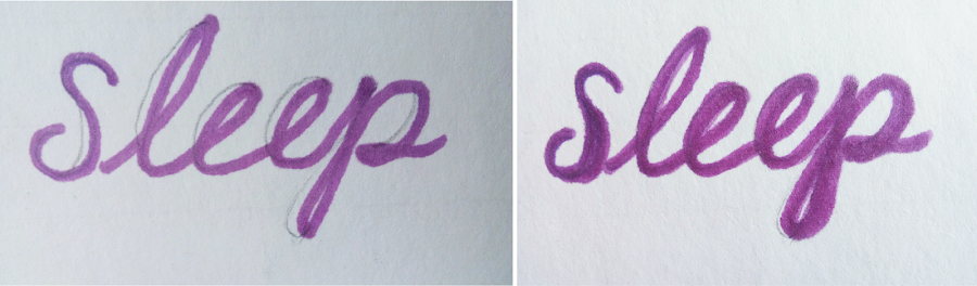 Primero marqué la letra con plumón después con lápiz marqué las lineas descendentes