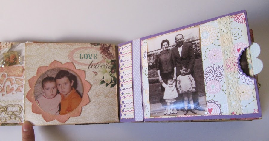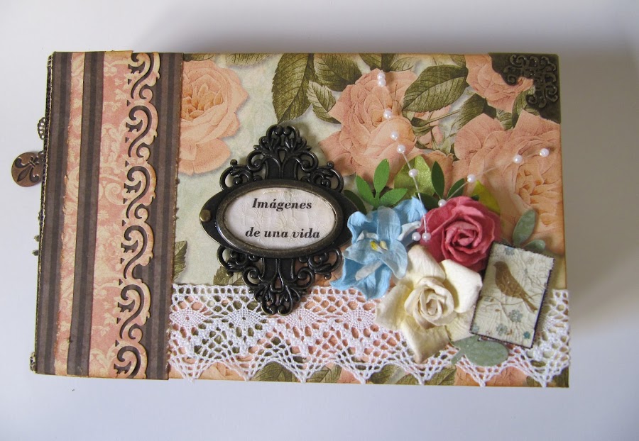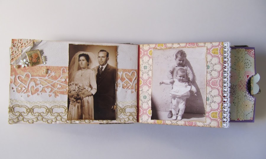 La estructura del álbum esta hecha por mi. Es bastante mini, por lo que no tienen mucho adorno, practicamente casi ninguno, sólo un par de paginas y lo que es la tapa.