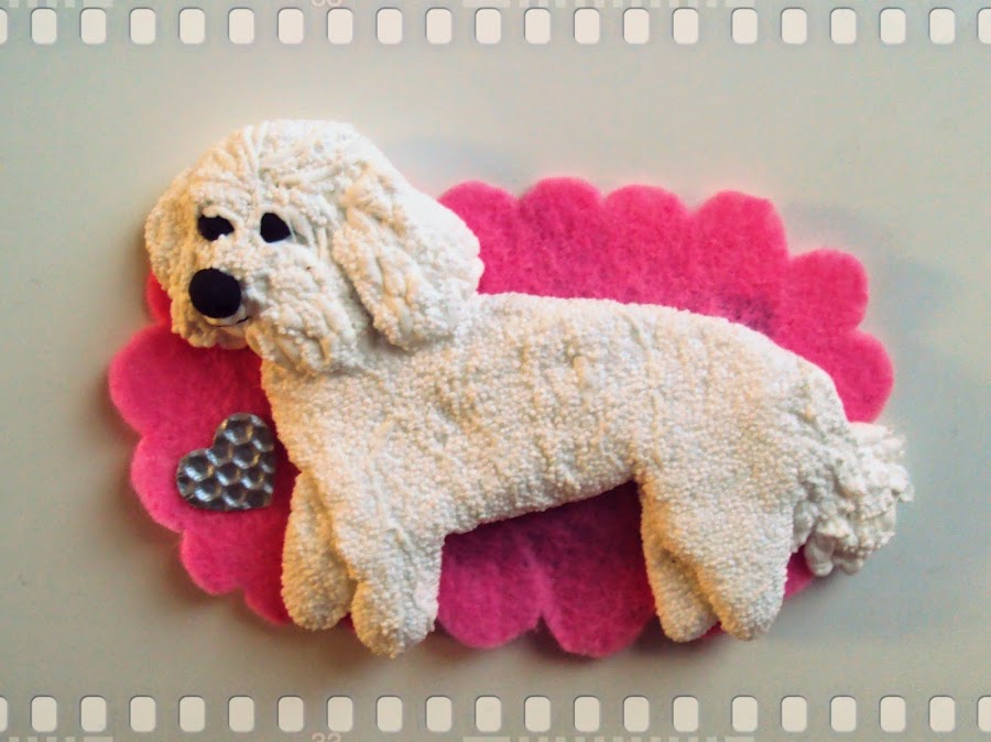 Cambiando de tema... Hoy os vamos a enseñar un encargo especial, un imán del perrito de mi querida Mariola, que aunque no nos vemos nunca ella sabe que la adoro.