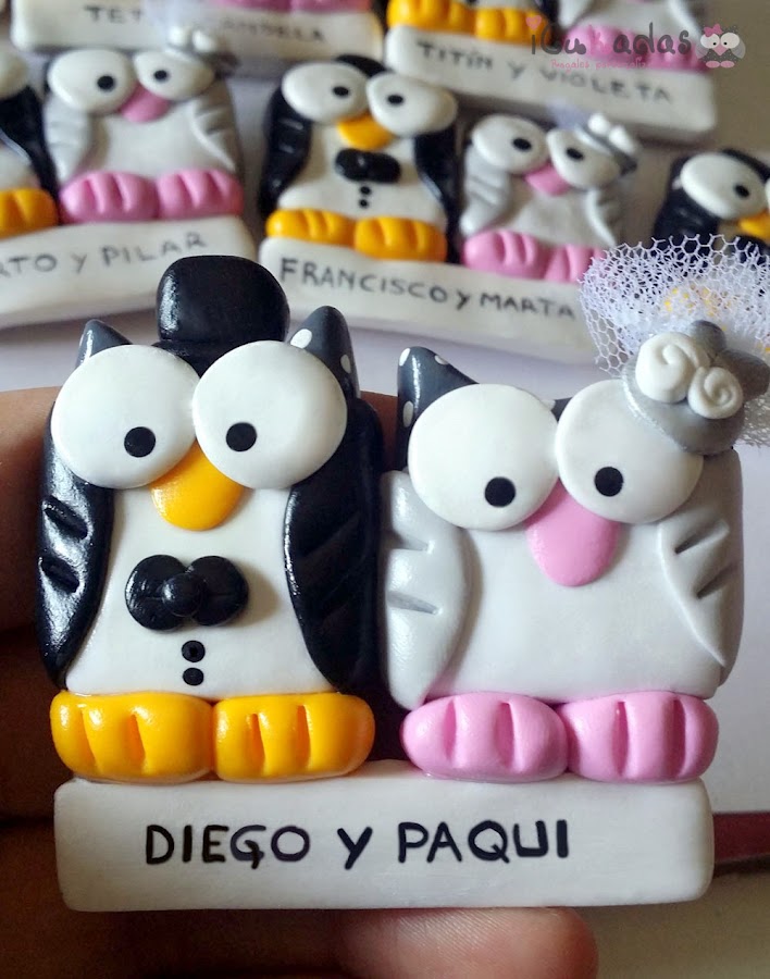 Por eso es el momento de enseñaros los imanes de búhos novios, personalizados. En este caso fueron los detalles que los novios le querían regalar a sus amigos, otras parejas que se casan en breve y como era un regalo para dos, juntamos a los dos búhitos en un solo imán.