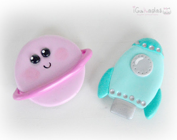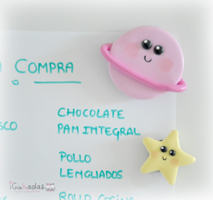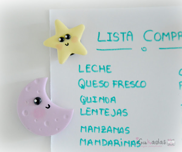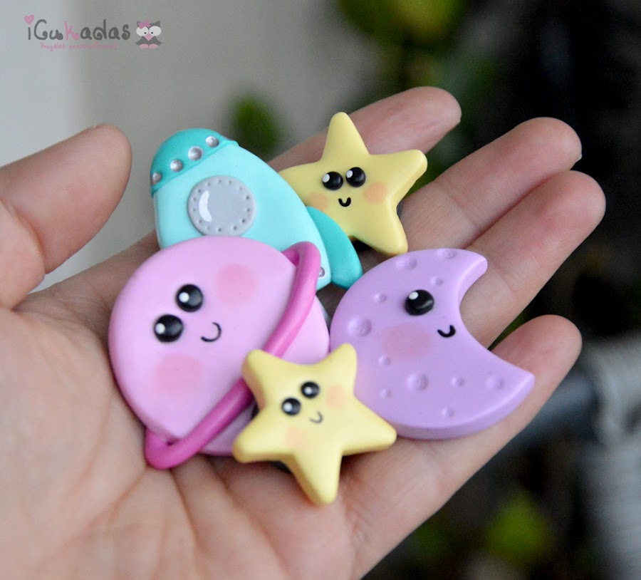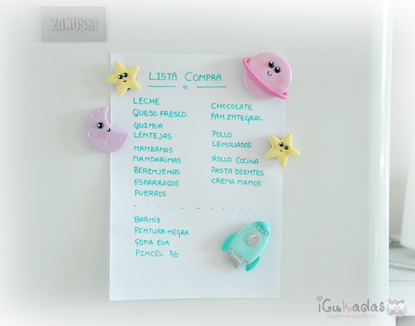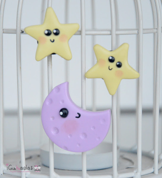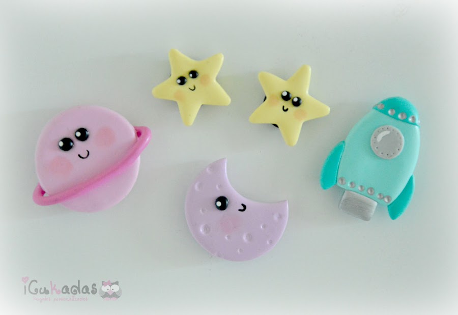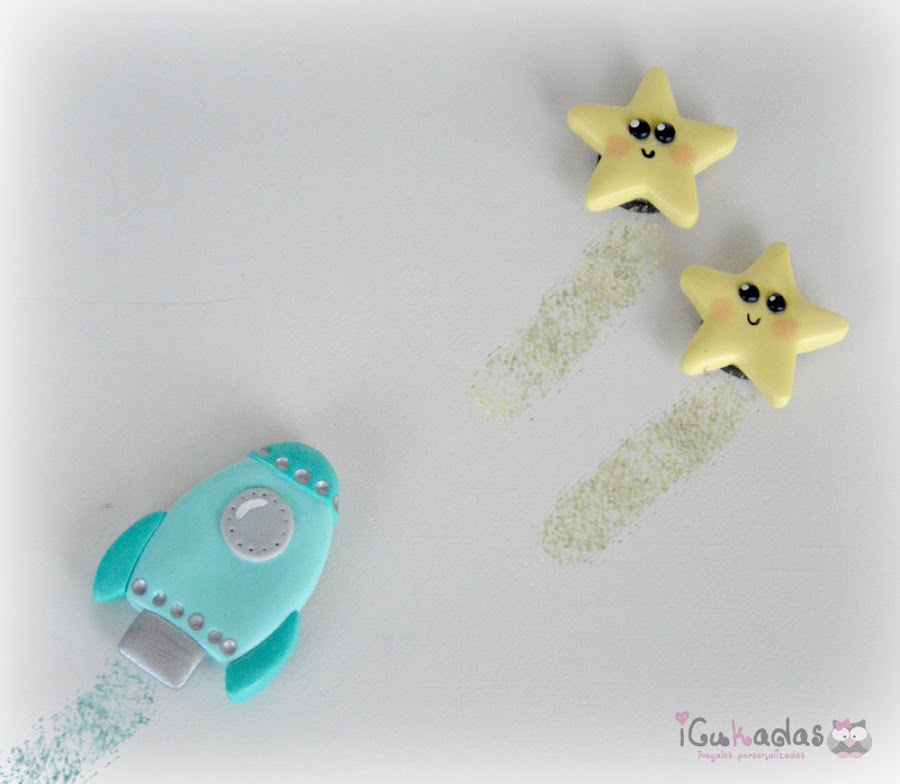Esta semana si que si, os enseño la colección de imanes Cielo estrellado. Son una luna, un cohete, un planeta y dos estrellas.