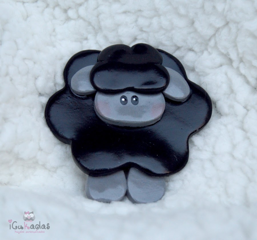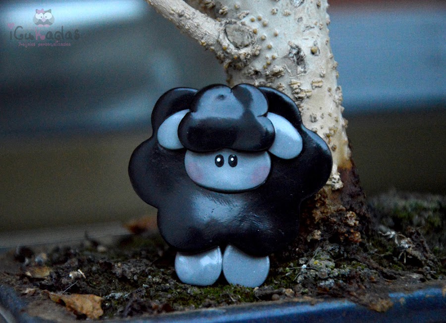 Dos versiones, una borreguita blanca, con su lazo, que puede hacerse en el color que se quiera, y otra en negro, la ovejita negra de la familia, la diferente, y para mi, la más especial.
