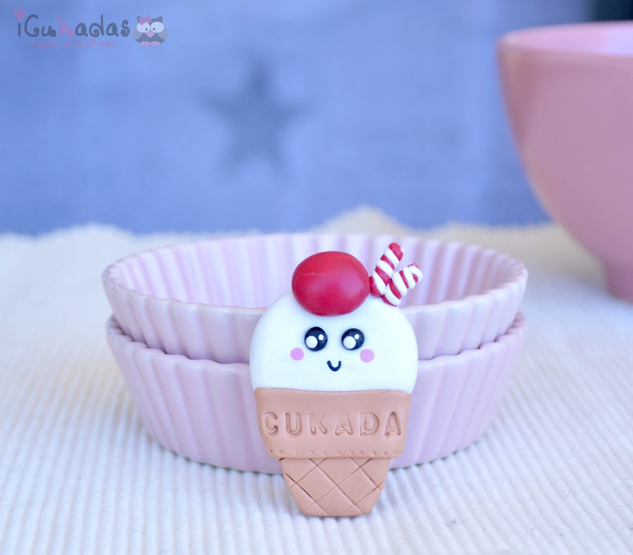 Son imanes, pero se pueden hacer como broches, como todo por aquí, ya lo sabéis, y por supuesto los helados se pueden hacer en otros colores-sabores, y los podéis encargar como siempre, escribiendo al correo.