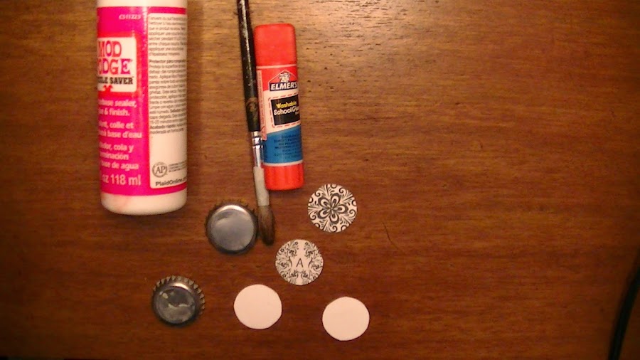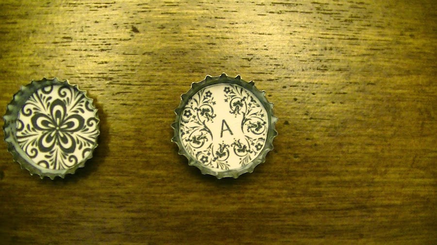-Se imprime un dibujo o se recorta de alguna publicacion el que nos guste, del tamaño de la tapita, aproximadamente son de una pulgada.