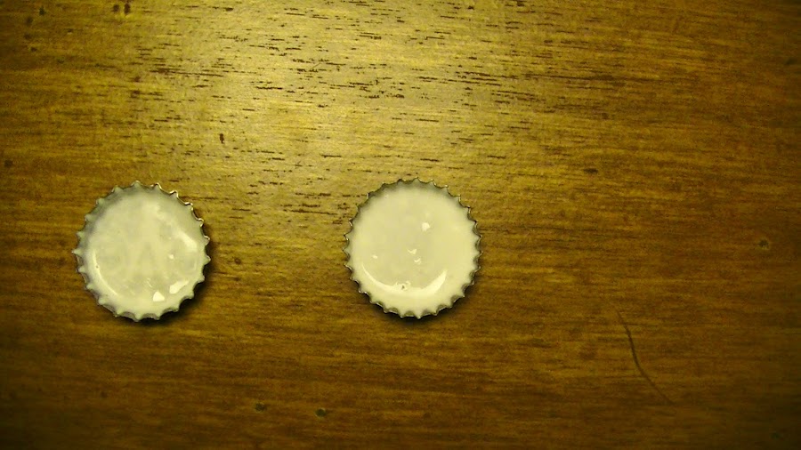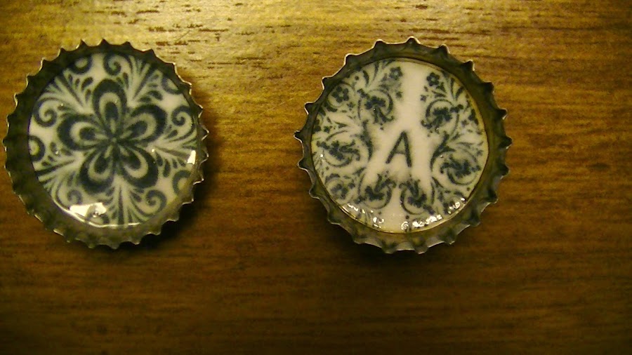 Para pasar el tiempo, ahora que esta de vacaciones y preparandose para comenzar la universidad, a mi hijo se le ocurrio hacer unos imanes para la heladera, y unos llaveros utilizando unas tapitas de botellas.