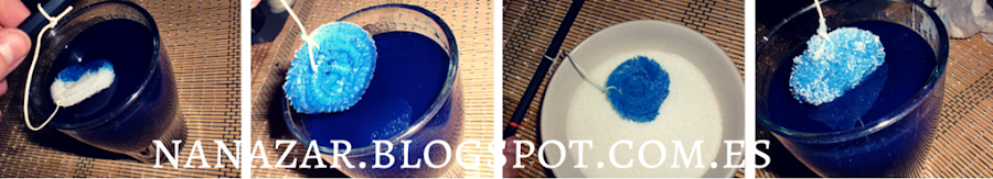 Cuando la mezcla esté fría, meteremos el limpia pipas sólo para mojarlo, ya que tendremos que empaparlo en azúcar para que se quede pegada en el mismo. (Ahora después explicaré por qué) Y volver a ponerlo dentro de nuestro vaso. Para dejarlo reposar, es conveniente tapar los vasos con un trapo o algo para que no se ensucien con el polvo o la suciedad del ambiente.