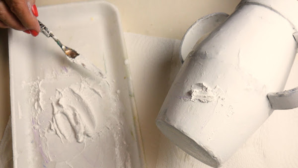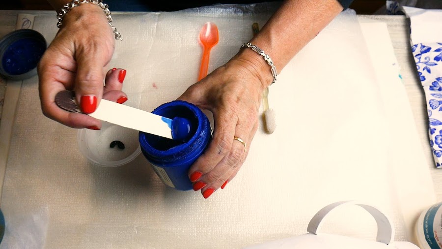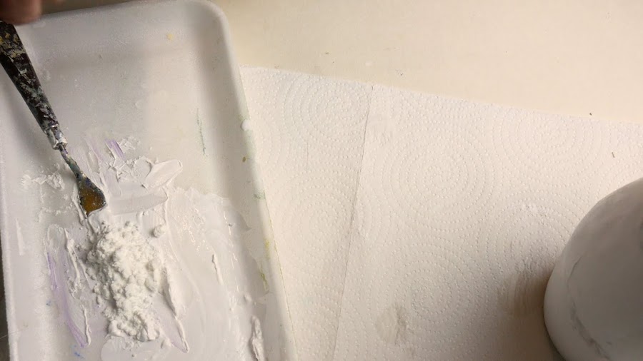 Para eso utilizo pintura acrílica blanca, puede ser latex y la mezclo con maicena o almidón de maíz hasta obtener una pasta.