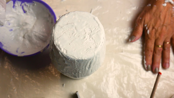El cuerpo de ésta vasija esta elaborado a partir de 2 potes de helado de 1/4 kilo y si lo quieren más grande usar de 1/2 kilo.
