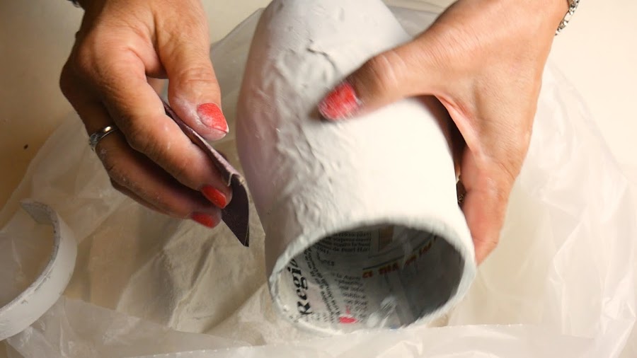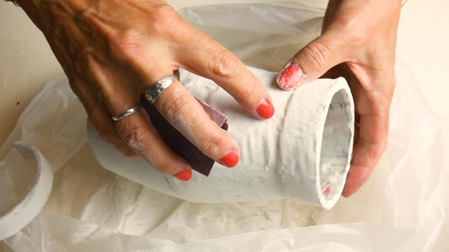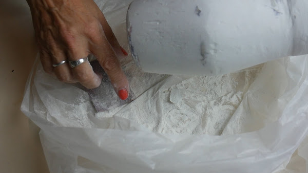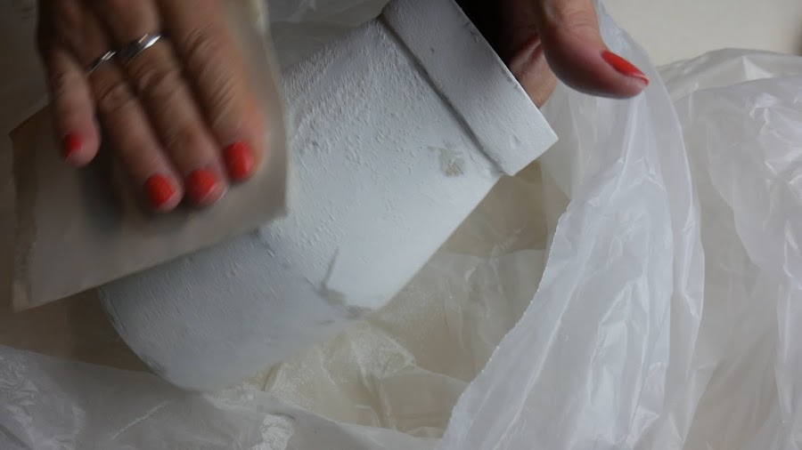 Una vez secas las debo lijar, para ello utilizo en éste caso una lija 100 y lo voy a realizar dentro de una bolsa para que retenga el polvo y no vuele por toda la casa.