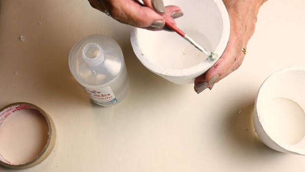 Como este barniz es muy espeso lo aligero con un poco de agua y lo aplico en el exterior y en el interior de la pieza con pinceleta suave