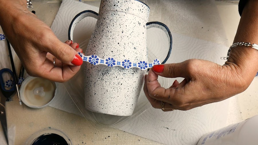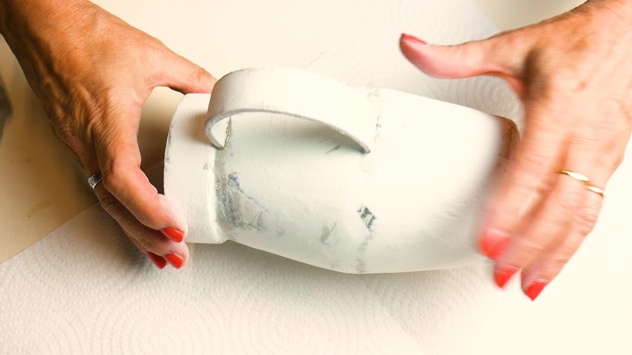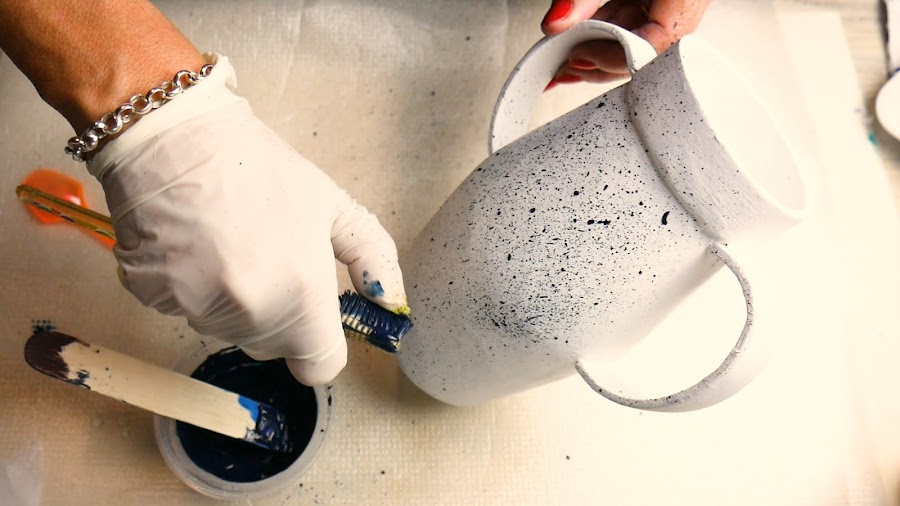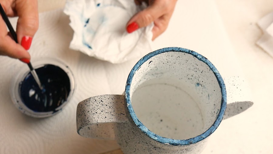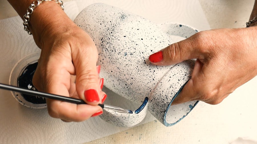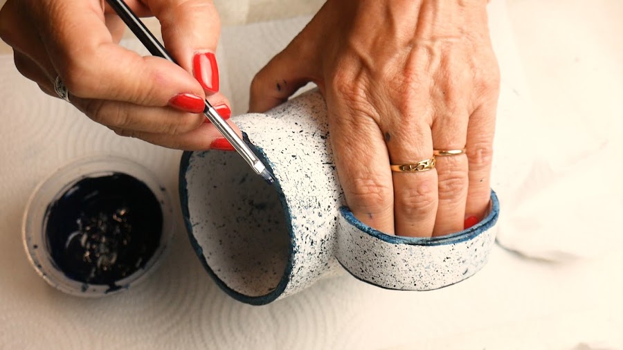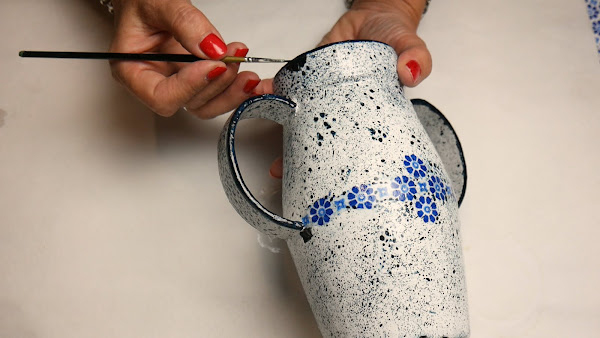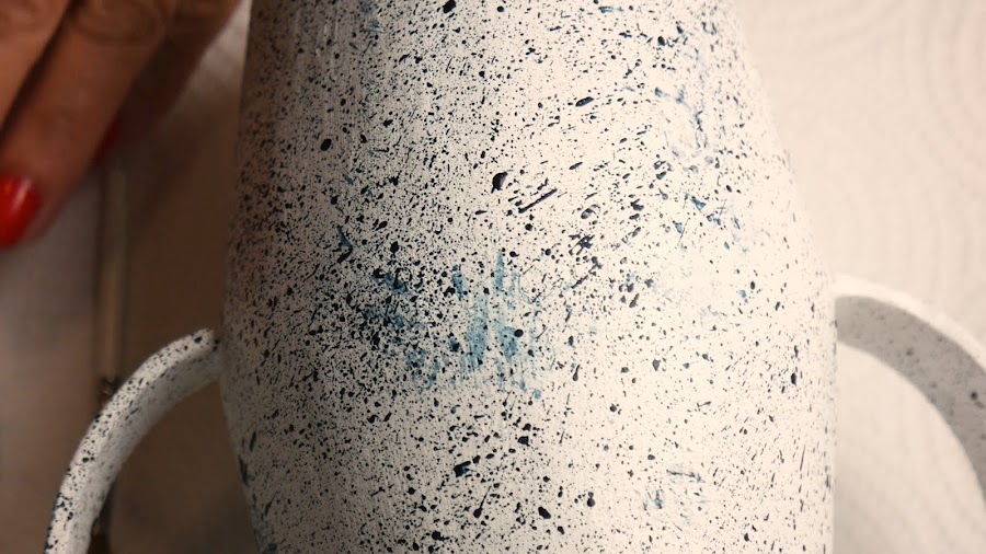 Pinto los bordes de la boca y las agarraderas, como la pintura está muy diluida porque la use para salpicar voy a tener que repasar la zona una vez secas.