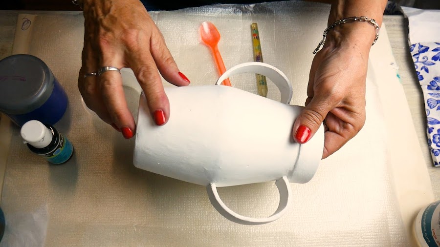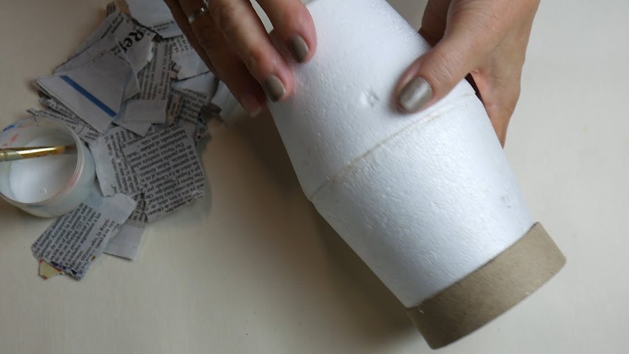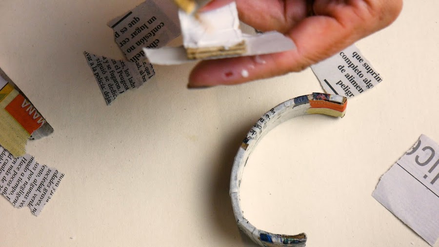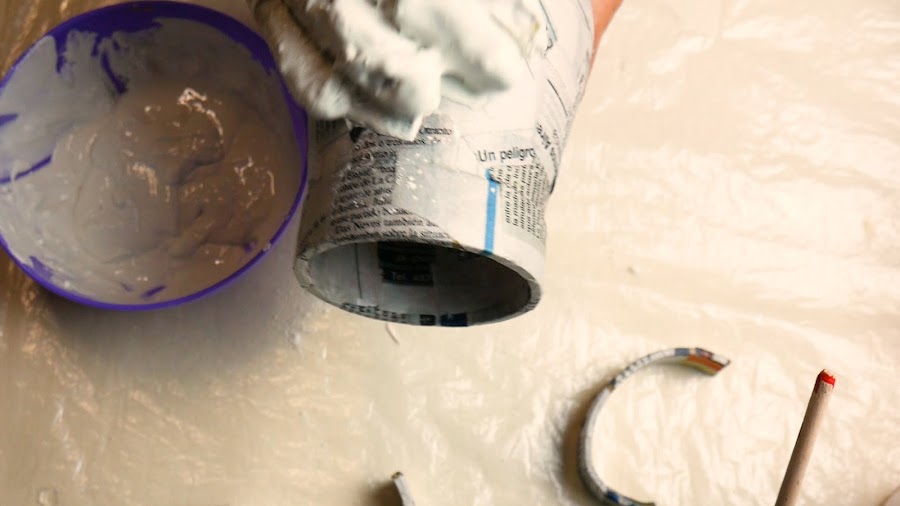 Por otro lado cubro de igual forma con el papel de diario las dos asas.