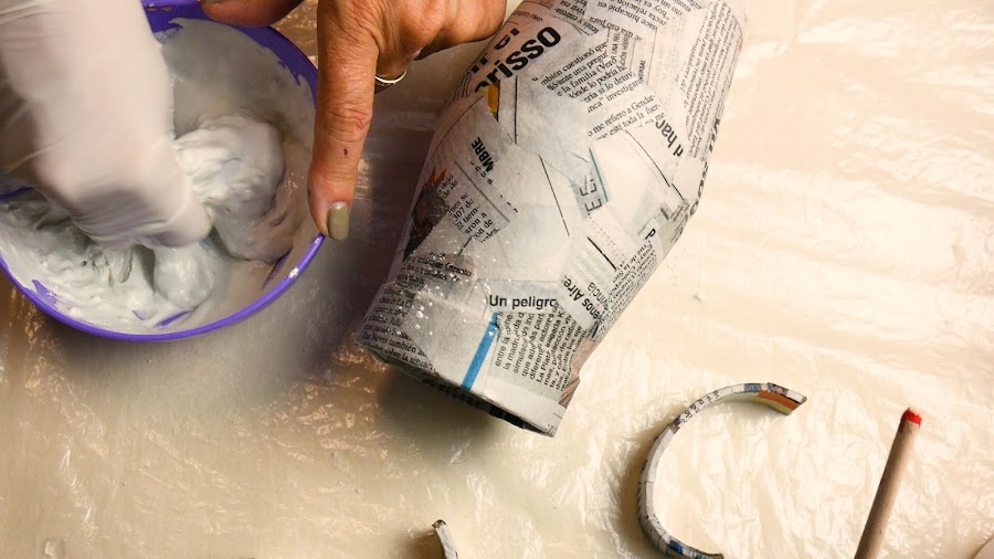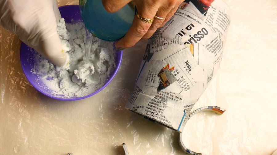 Una vez que se secó la pieza voy a realizarle por encima una cartapesta para unirlas.