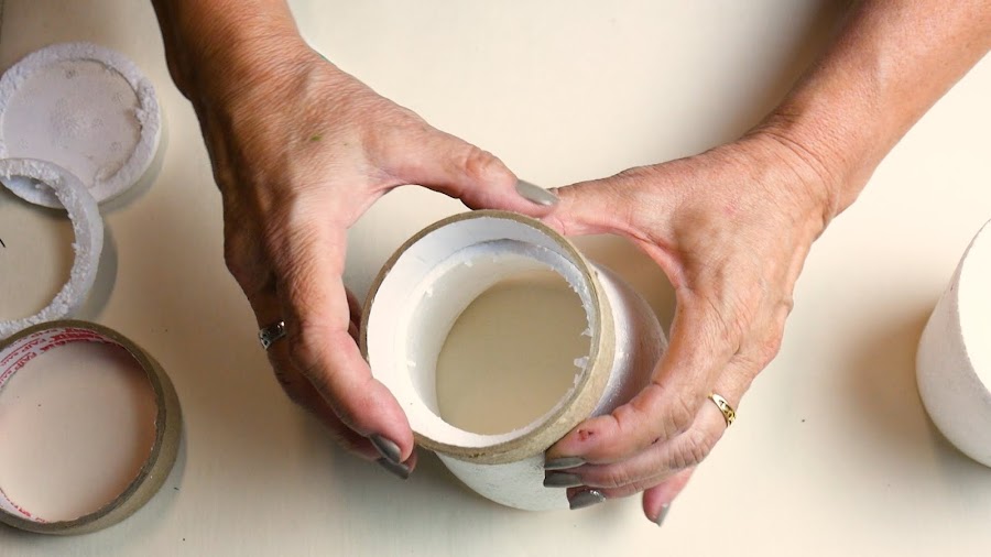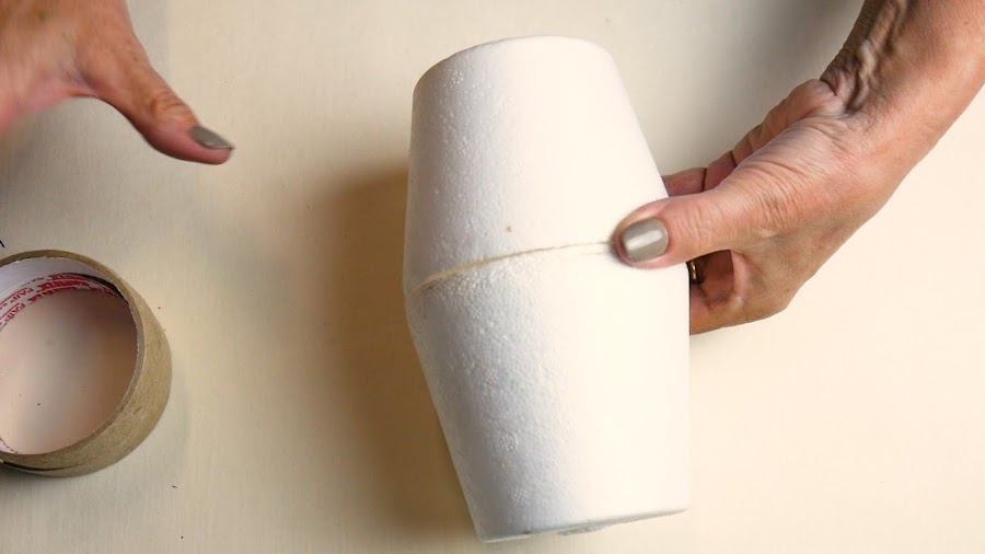 Pego ahora los dos potes por la boca dejando arriba el corte que recién hice.