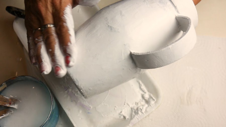Cuando se seca se le da una ó dos manos de acrílico blanco o latex y así la estructura de la pieza está terminada.