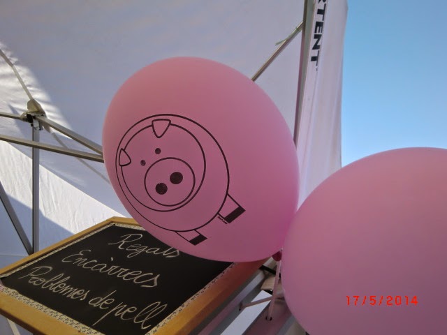 Olvidé mencionar que teníamos puestos hasta globos!!! Esos globos grandes y hermosos como no, recordándonos que estábamos en la feria del tocino, con un cerdito dibujado. Monísimo todo! De verdad que felicito a los organizadores.